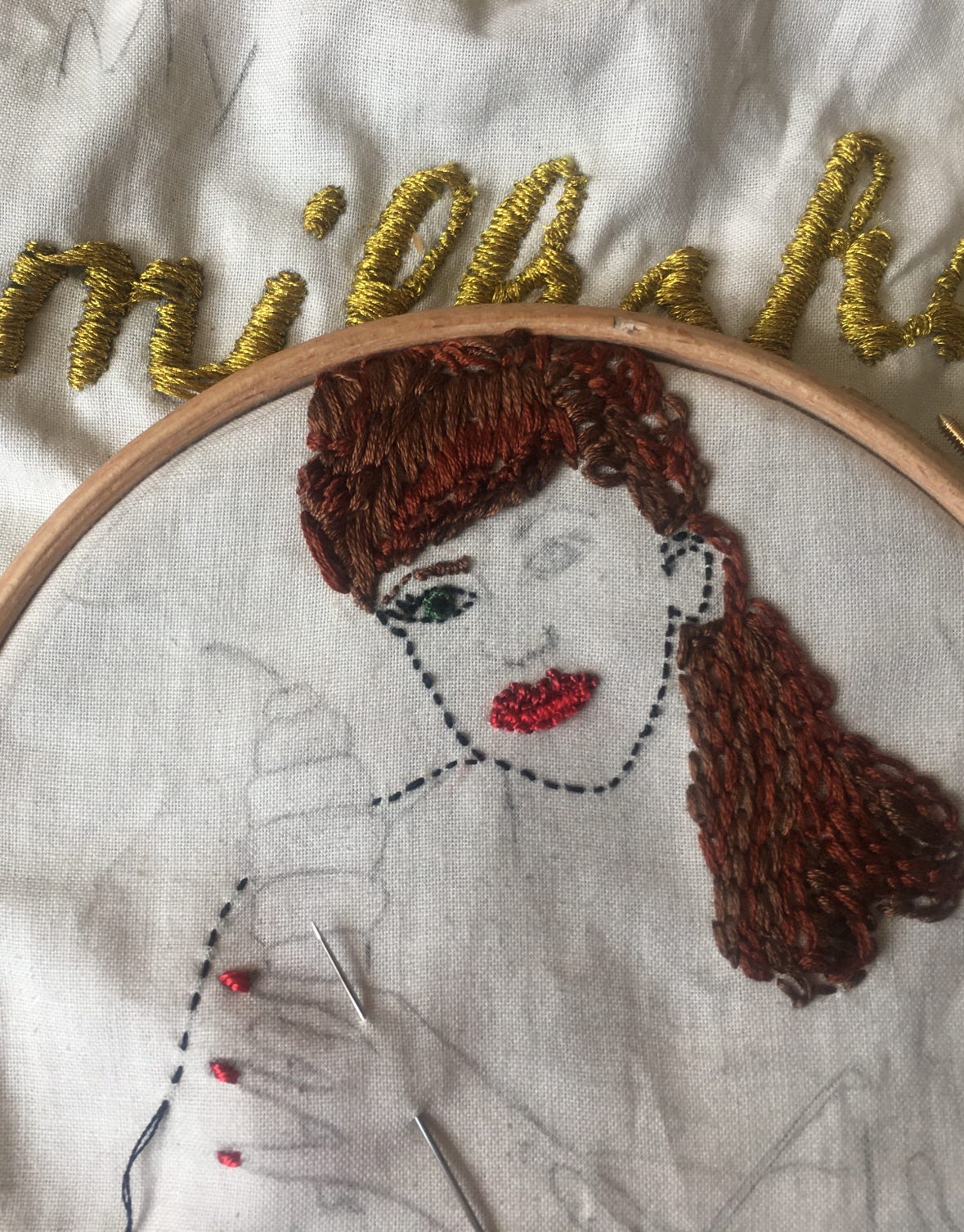 A portrait is really ambitious especially in stitched form. I didn’t make it easy for myself. Her eyes were a little intense, the mouth a little big, and the hand a little sketchy but I think she had a charm about her.