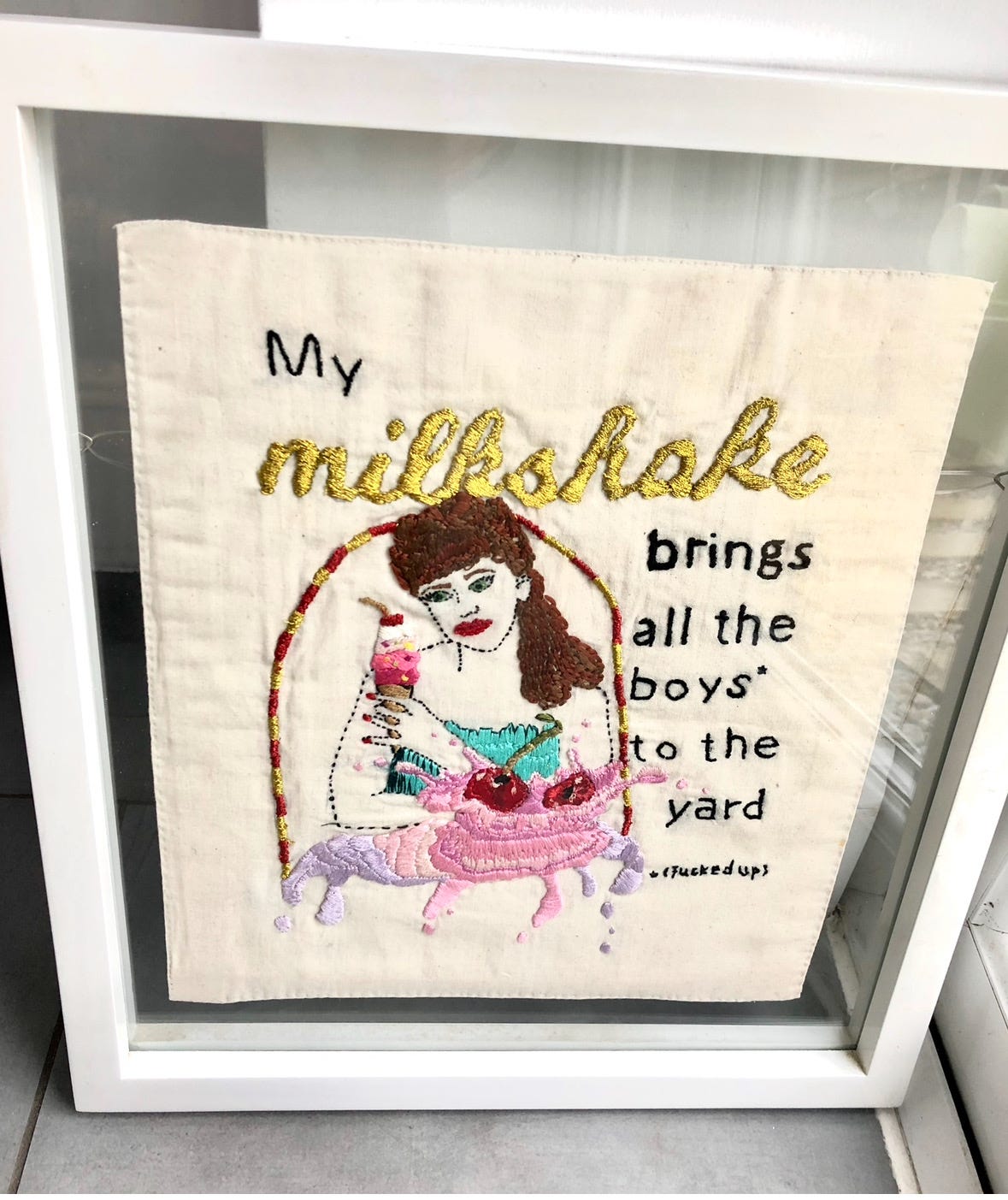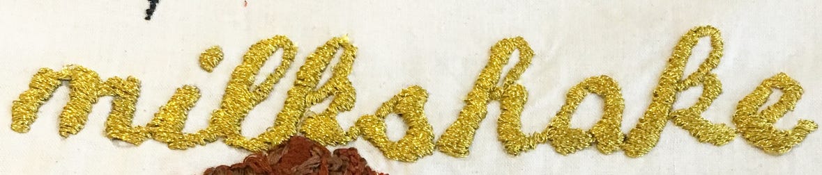Milkshake by Kelis was the inspiration for my second textile for the Profanity Embroidery Group (PEG) misheard lyrics exhibition.